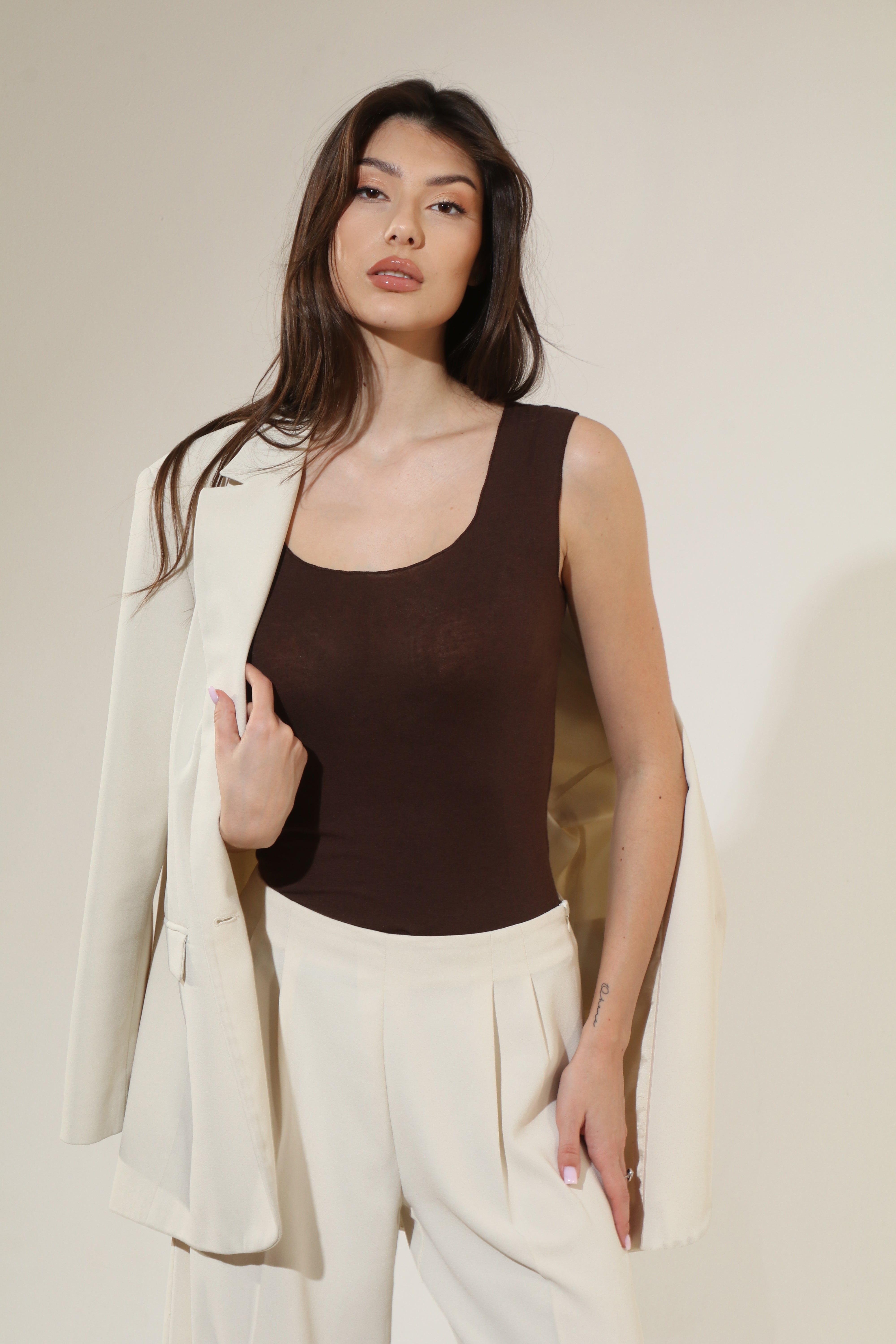 Bluza cu cașmir și modal cu decolteu bărcuță maro BL005