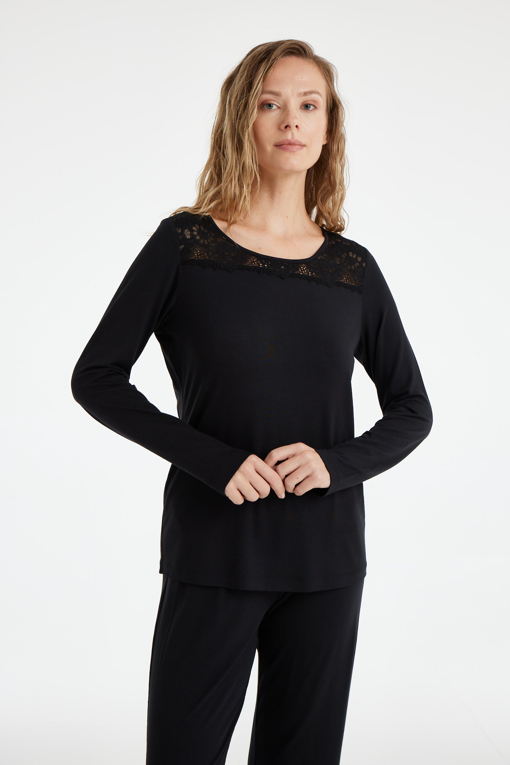 - Bluză cu mânecă lungă accesorizată cu dantelă,