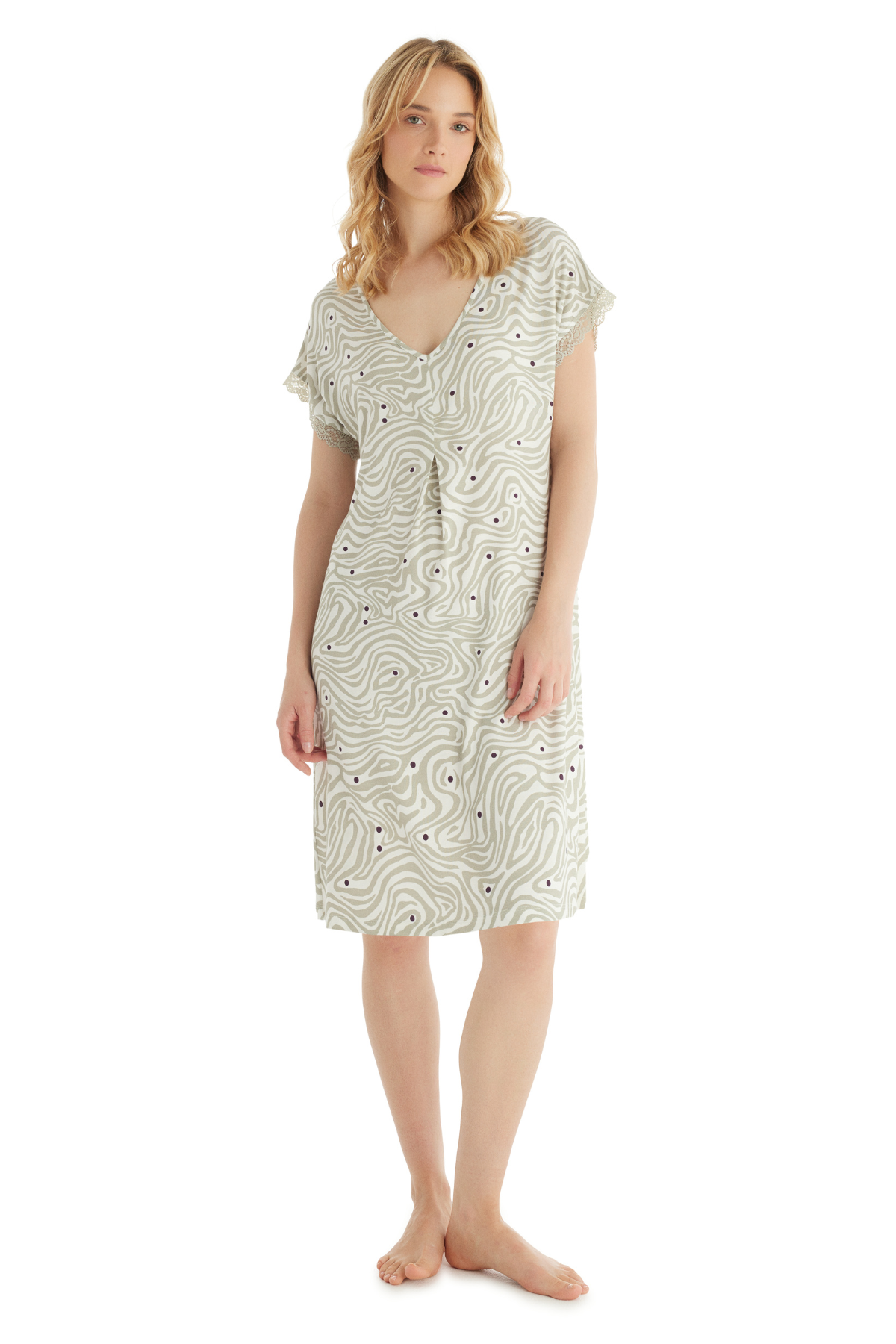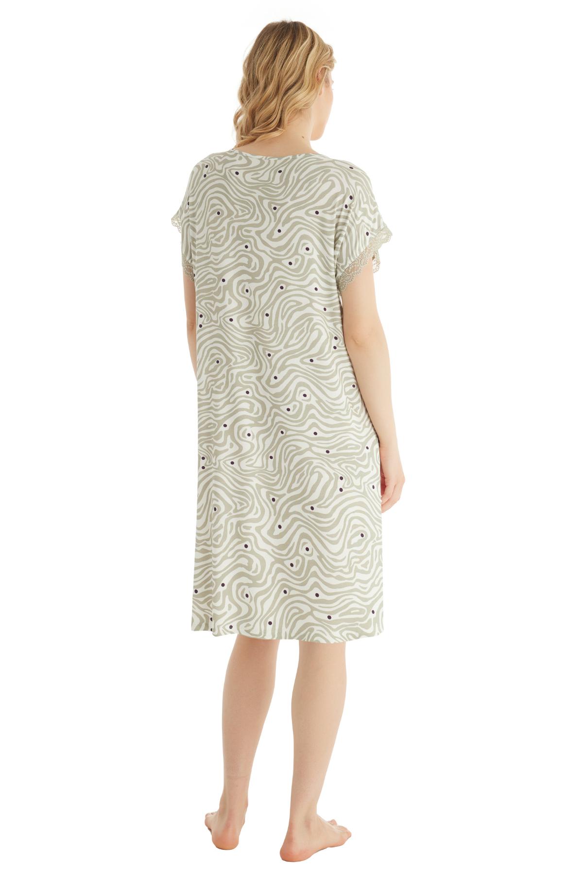 - Model: cămașă de noapte cu mânecă scurtă accesorizată cu dantelă