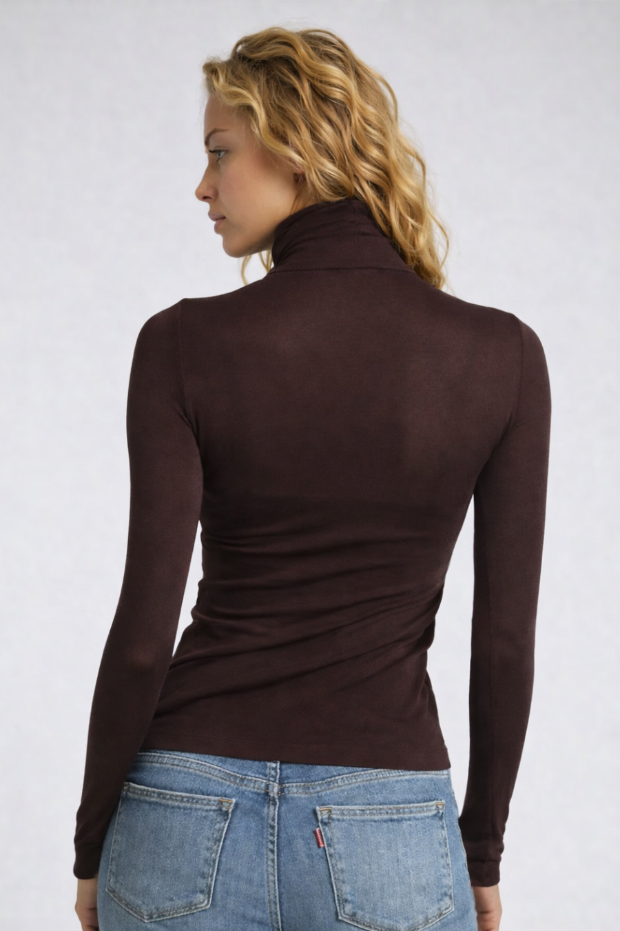 Bluza cu cașmir și modal cu decolteu bărcuță maro BL005