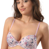Sutien push-up cu cupă graduată din colecția SOFIA. Alege un sutien elegant, realizat din microfibră fină cu imprimeu floral în nuanțe de mov. Oferă susținere, confort și un plus de volum pentru un decolteu seducător și natural.