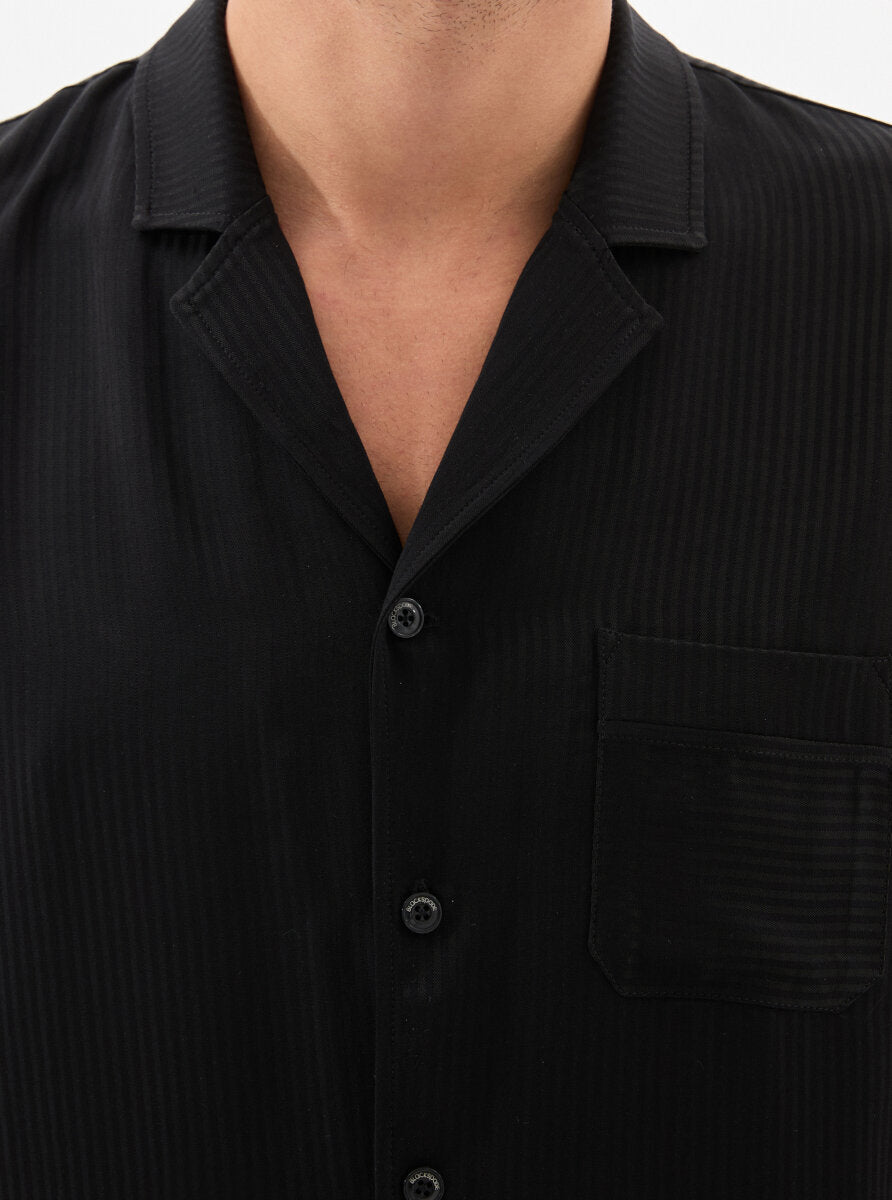 Pijama premium GABRIEL din colecția Blackspade impresionează prin textura moale a vâscozei și designul modern, fiind perfectă pentru confortul de zi cu zi sau nopțile relaxante acasă.