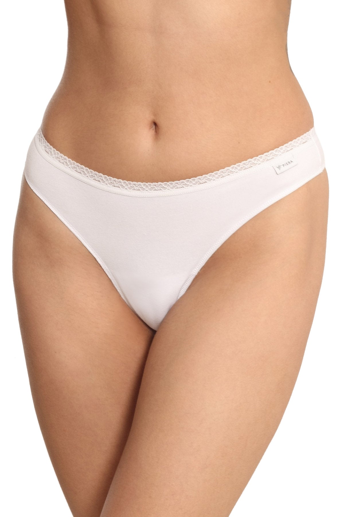 Chilot tanga din colecția CECILIA. Realizat din bumbac fin cu detalii de dantelă, acest model alb cu talie joasă combină seducția cu confortul pentru o purtare plăcută zi de zi.