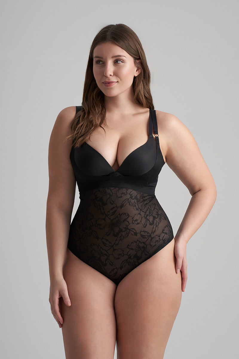 Body modelator cu bust decupat LACOBB Bye Bra – combinația ideală de feminitate și susținere. Realizat din dantelă florală ușoară, oferă compresie medie și un aspect neted, rămânând complet invizibil sub haine. Bretelele reglabile și baza igienică din bumbac asigură confortul zilnic.