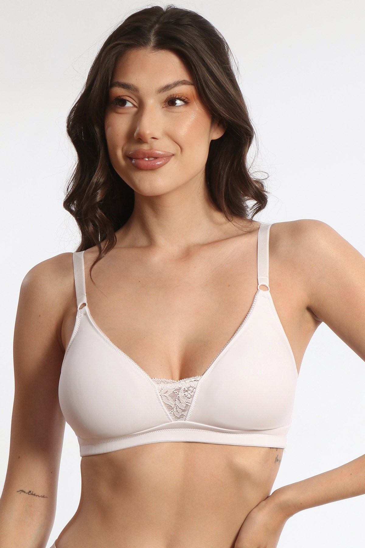 Sutien fară sârmă cu cupă soft din colecția OLGA. Realizat din microfibră fină, acest model oferă susținere delicată pentru confortul tău zilnic.