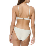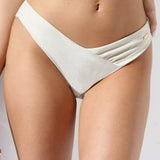 Slipul de baie din colecția LUXOR îmbină eleganța cu un croi contemporan, datorită designului asimetric și detaliului plisat. Realizat din microfibră reciclată cu fir metalic, oferă confort, elasticitate și un efect subtil strălucitor – ideal pentru plajă și piscină.