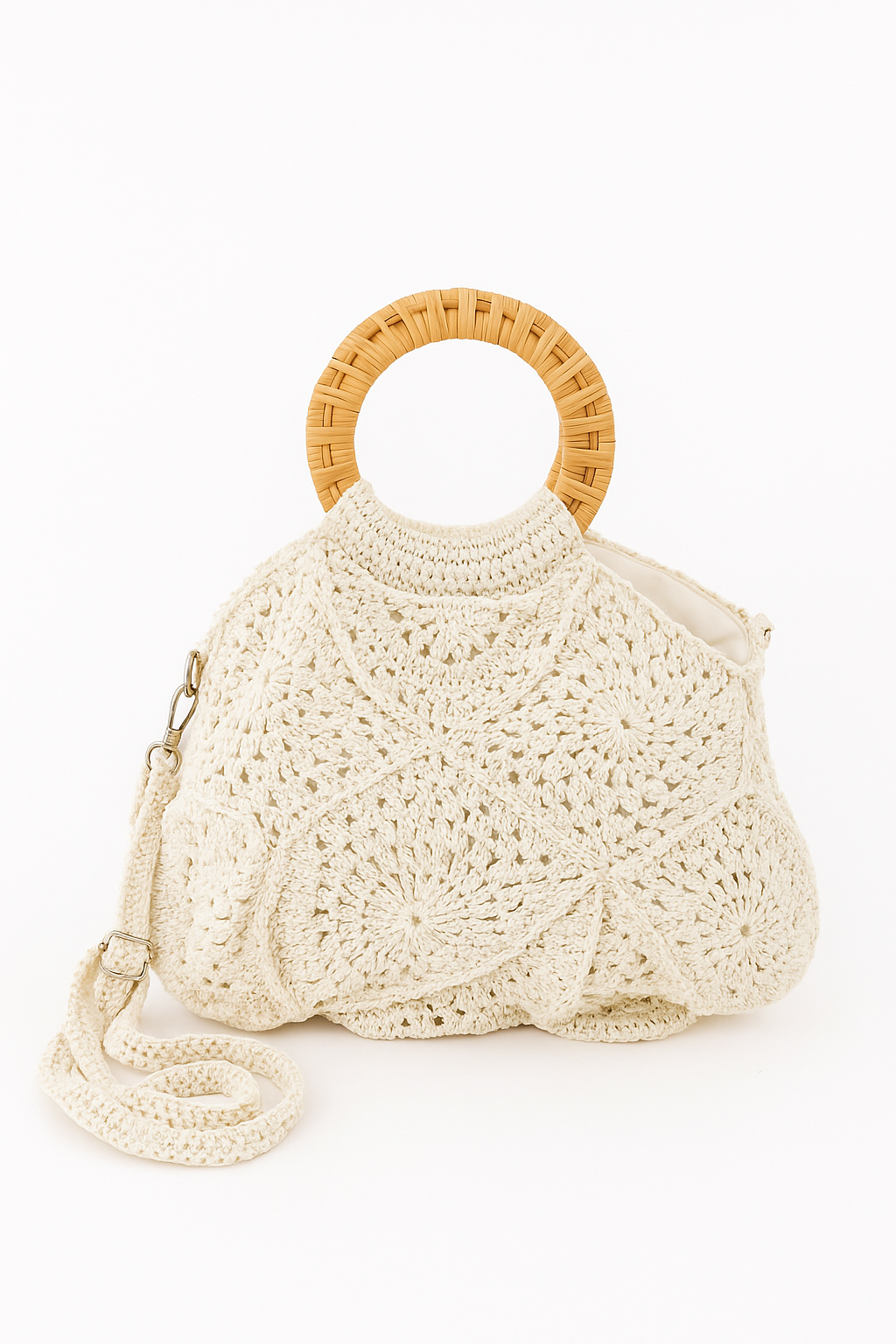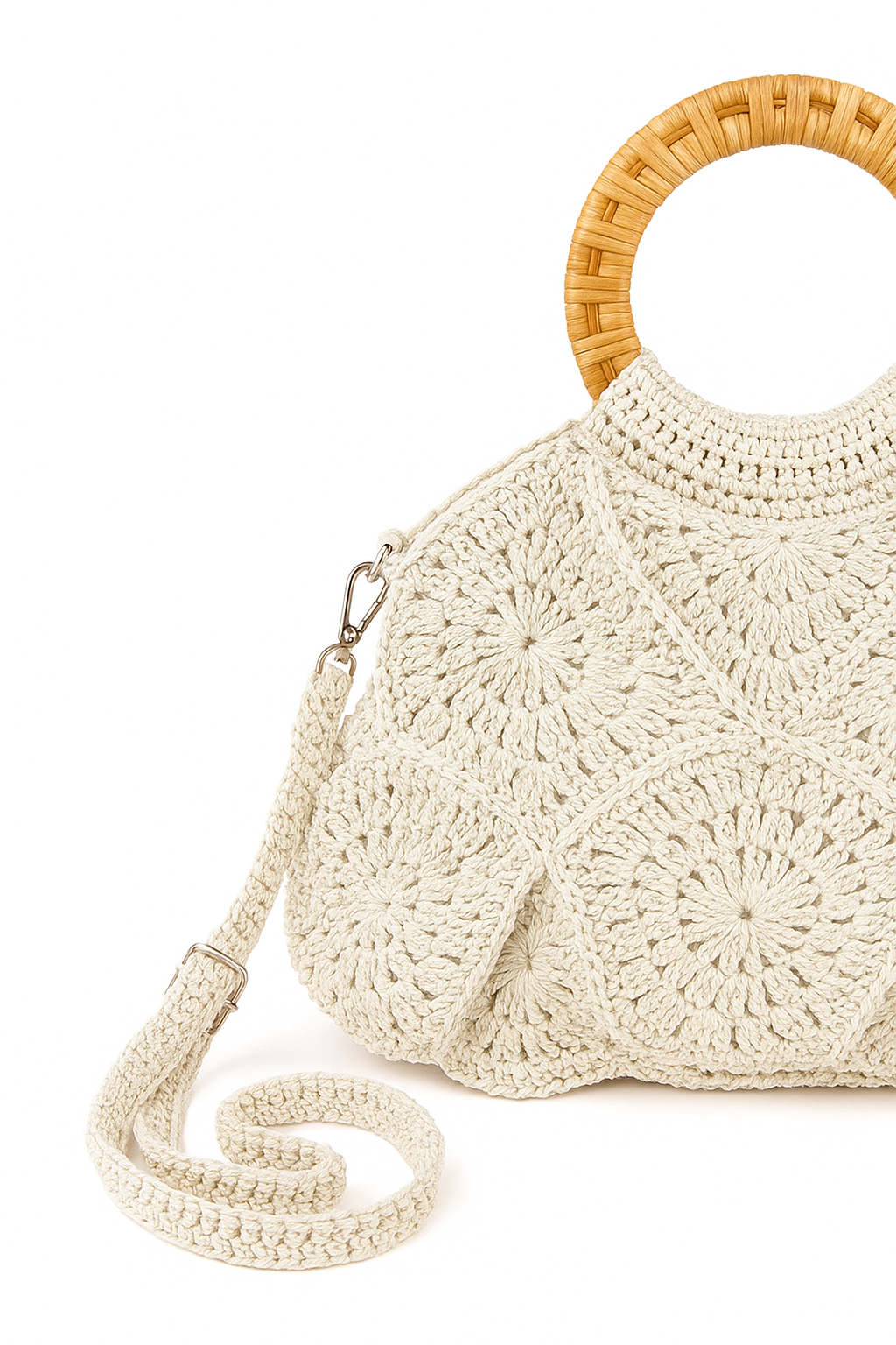 Geantă croșetată Enrico Versari, model floral.