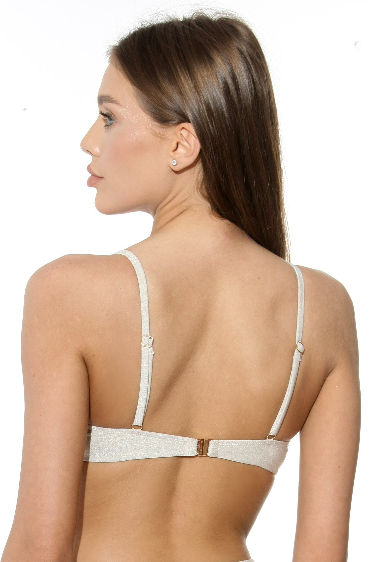 Sutienul push-up din colecția LUXOR pune în valoare bustul, cu un efect subtil strălucitor. Realizat din microfibră reciclată cu fir metalic, are cupe graduate, sârmă, bretele ajustabile și închidere la spate – pentru susținere și confort, ideal pentru plajă sau piscină.