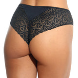 Chilot brazilian cu dantelă geometrică din colecția CATY. Un model elegant, realizat din microfibră fină la atingere și dantelă geometrică, ce oferă un confort remarcabil și un aspect feminin, subtil.