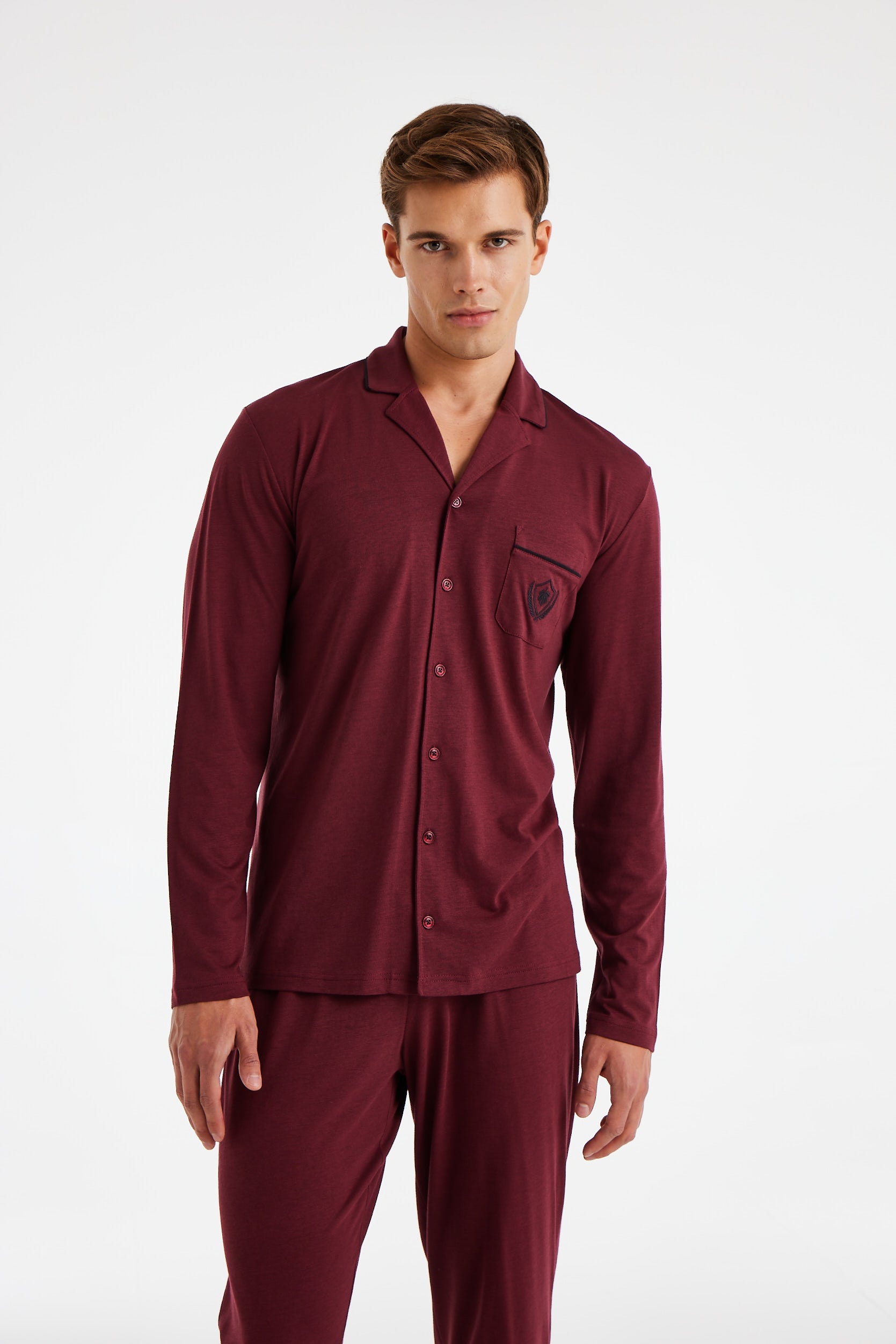 - Model: pijama lungă din două piese