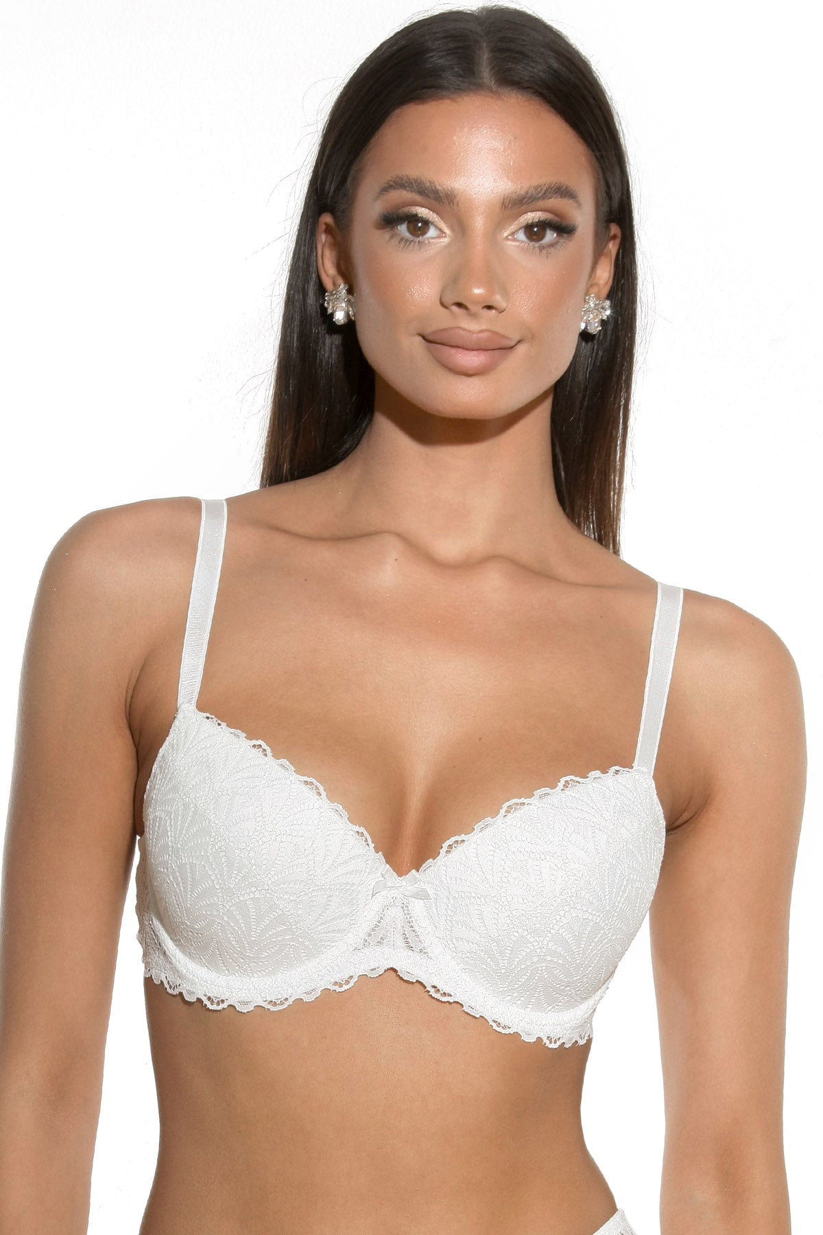 Sutien clasic cu dantelă geometrică din colecția CATY. Cu cupă soft, burete și sârmă delicată, acest model îmbină confortul cu o eleganță subtilă. Ideal pentru susținerea zilnică, cu un design ce sublinează discret linia bustului.